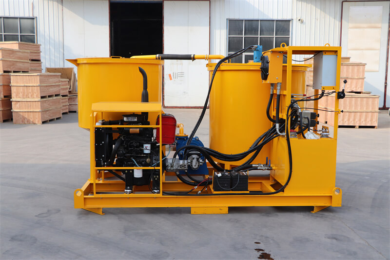 HWMA800-1500D渦輪攪拌機由鋼板圓柱形攪拌罐、重型泥漿泵、攪拌槽組成,安裝在堅固的底座上。泥漿通過專用泵產(chǎn)生的高速渦流進(jìn)行攪拌。混合后,混合物由上述同一臺泵用低速攪拌槳泵入攪拌罐。當(dāng)攪拌罐中的混合物完全泵出后,切換專門設(shè)計的手柄閥,繼續(xù)攪拌下一輪泥漿,大大提高了工作效率。