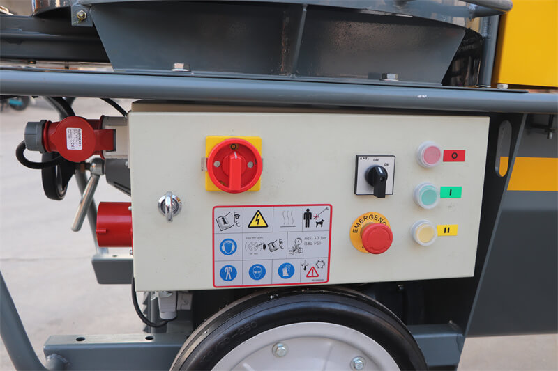 該機(jī)器配有砂漿軟管、空氣軟管、噴槍、噴嘴和遙控器