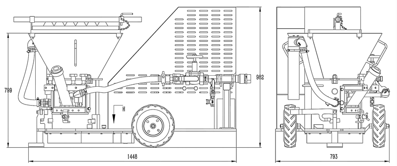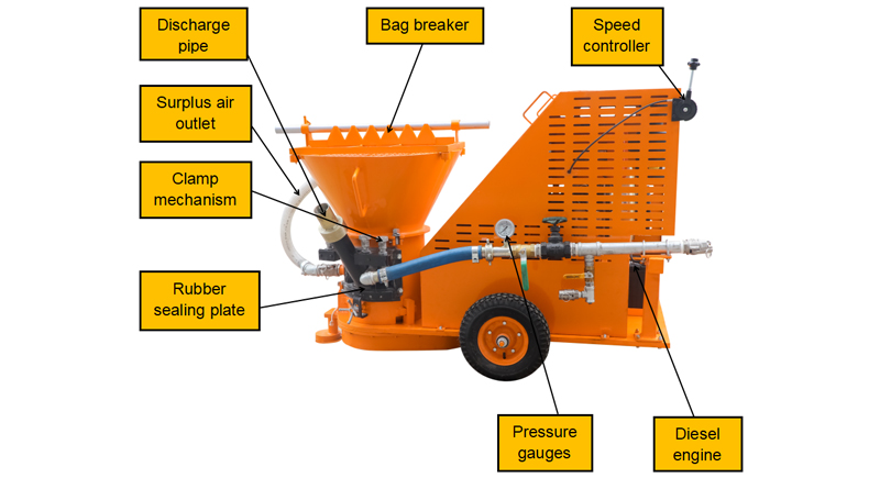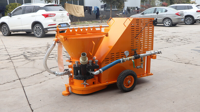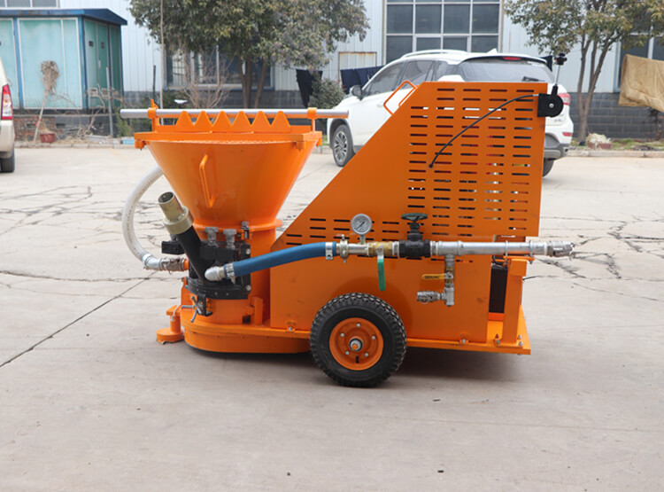 ④ 干混合材料隨后以懸浮狀態(tài)通過(guò)軟管輸送到噴嘴,在那里加水,并將水和干材料混合在一起 混合。